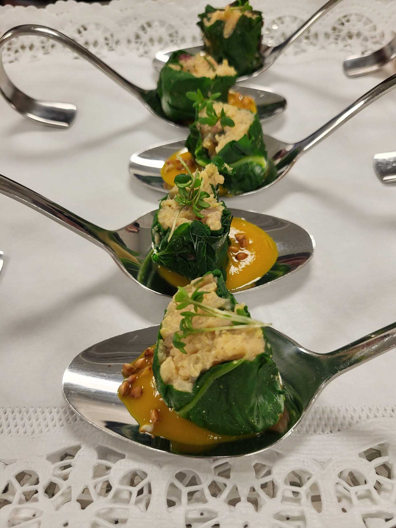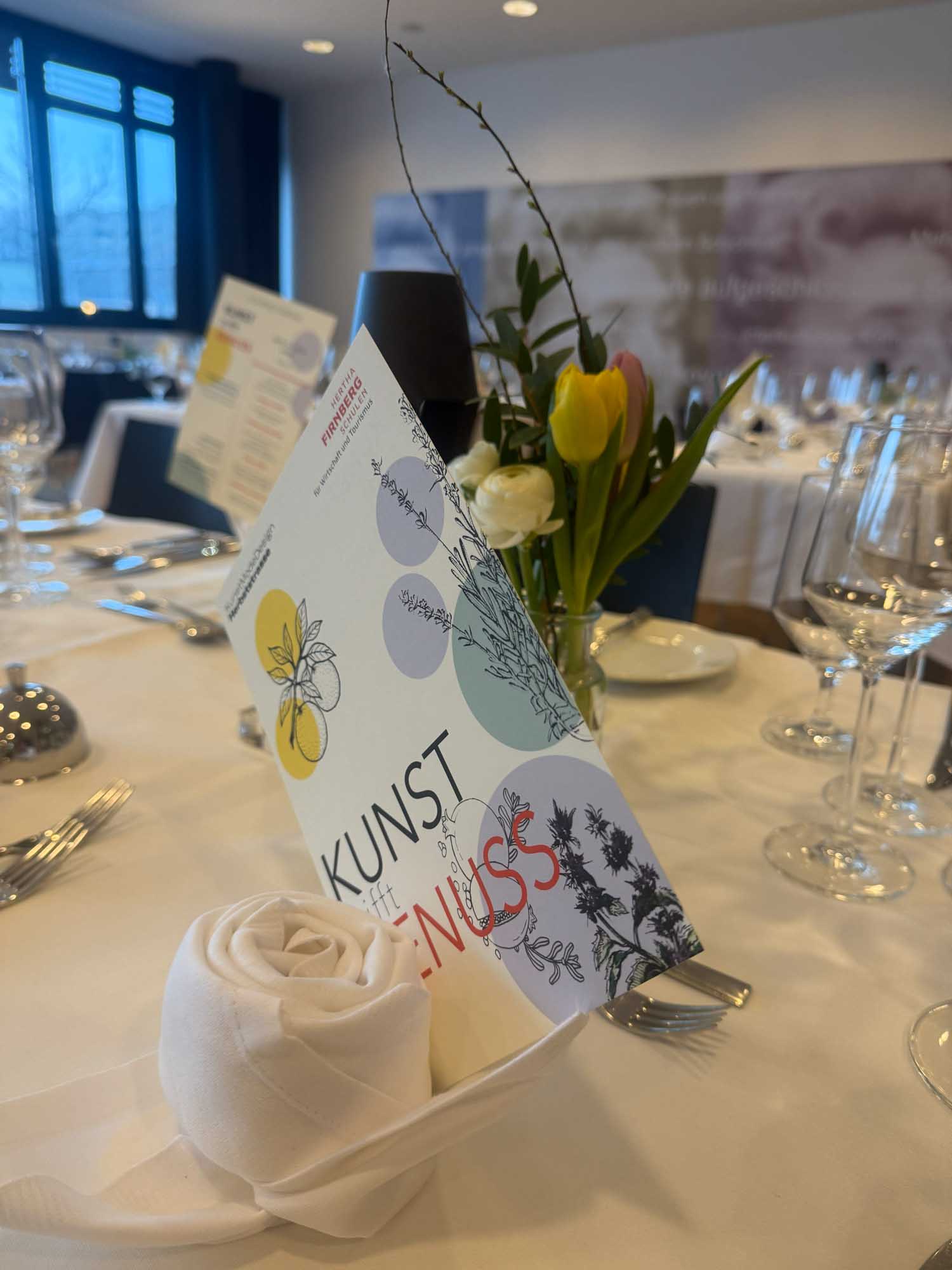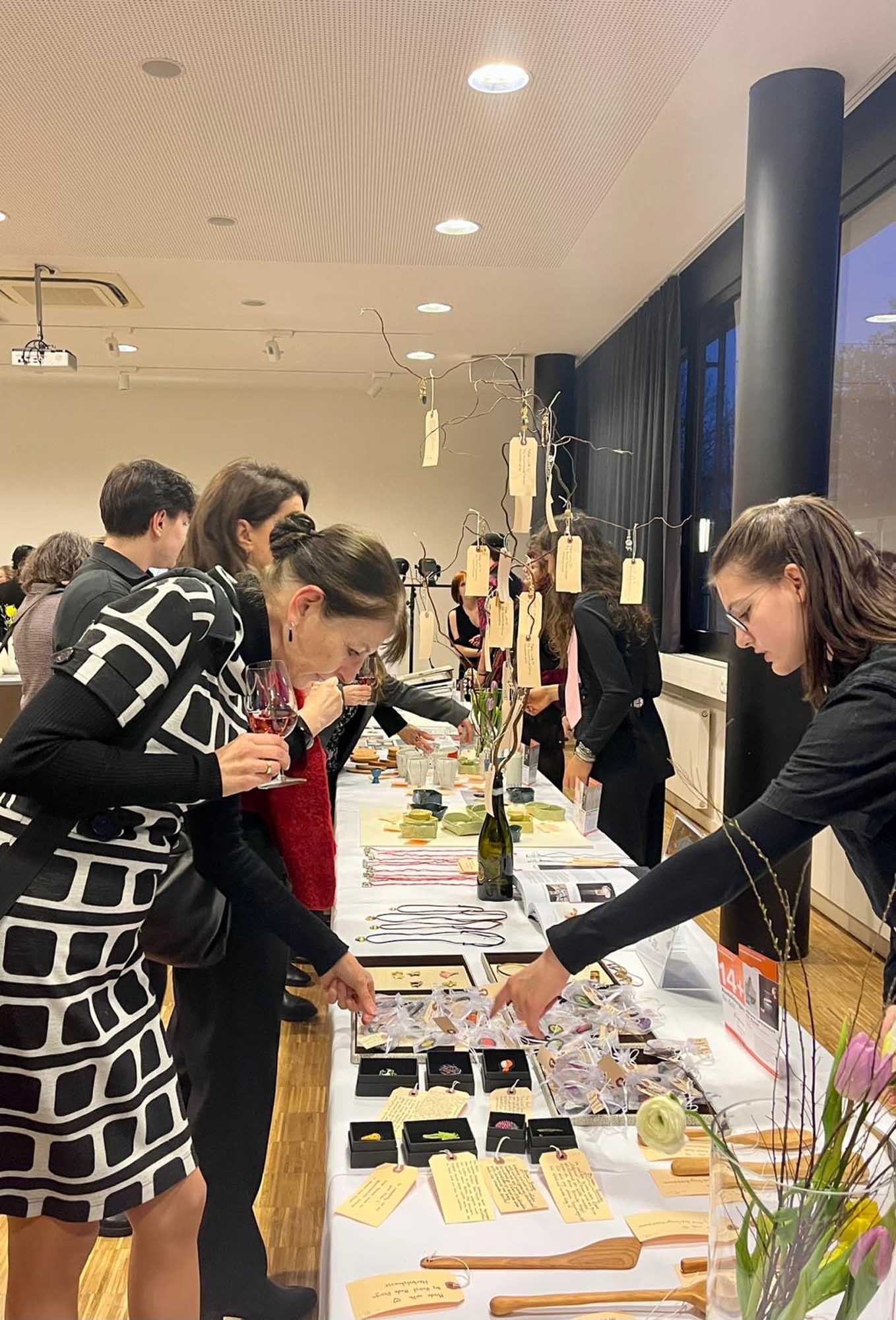 Die Gäste wurden am frühen Abend mit einem stilvollen Genuss-Cocktail und musikalischer Begleitung empfangen und nutzten die Gelegenheit, den professionell gestalteten Kunstmarkt zu erkunden. Dort konnten Schmuckstücke, Keramiken, bedruckte Stofftaschen sowie Karten und Bilder bewundert und erworben werden. Im Anschluss wurden die zahlreichen Besucher:innen bei einem exklusiven Gourmetabend mit einem fünfgängigen Menü, abgestimmter Weinbegleitung sowie hoher gastronomischer Qualität und professionellem Service verwöhnt.
